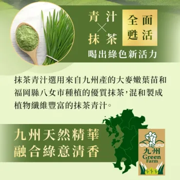 來自福岡八女市抹茶與九州大麥若葉的巧妙融合,茶香濃郁回甘。