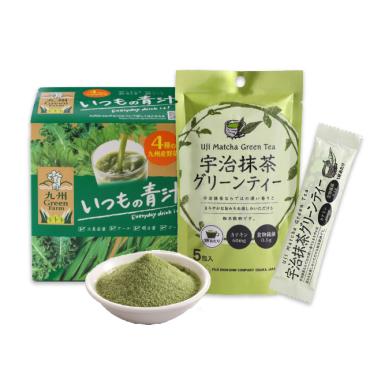 • 成分:每日青汁-大麥苗粉、難消化麥芽糊精、羽衣甘藍粉、明日葉粉、苦瓜粉、海藻糖、環糊精;宇治抹茶粉末-砂糖、葡萄糖、抹茶、難消化麥芽糊精、綠茶萃取物