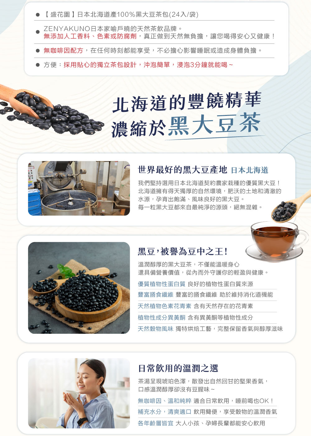• 品名:【盛花園】日本北海道產100%黑大豆茶包(24入/袋,3袋/組)