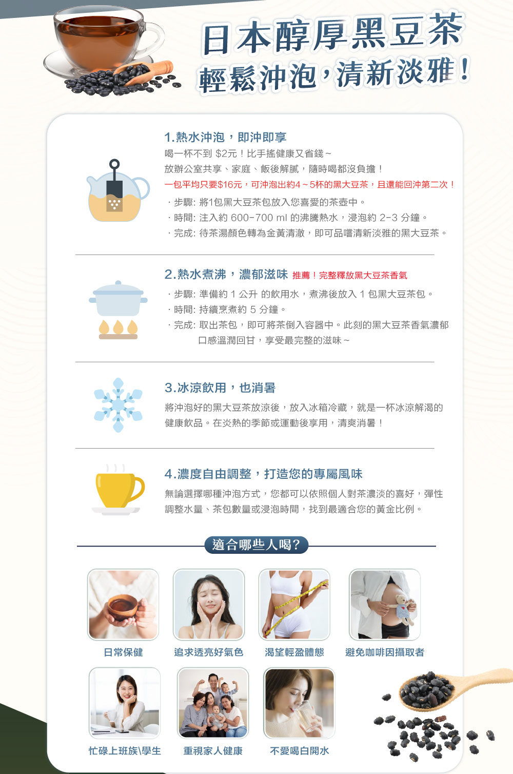 • 原產地(國):黑大豆茶包-日本鳥取縣(日本原裝);堅果花園九寶經典罐-台灣
