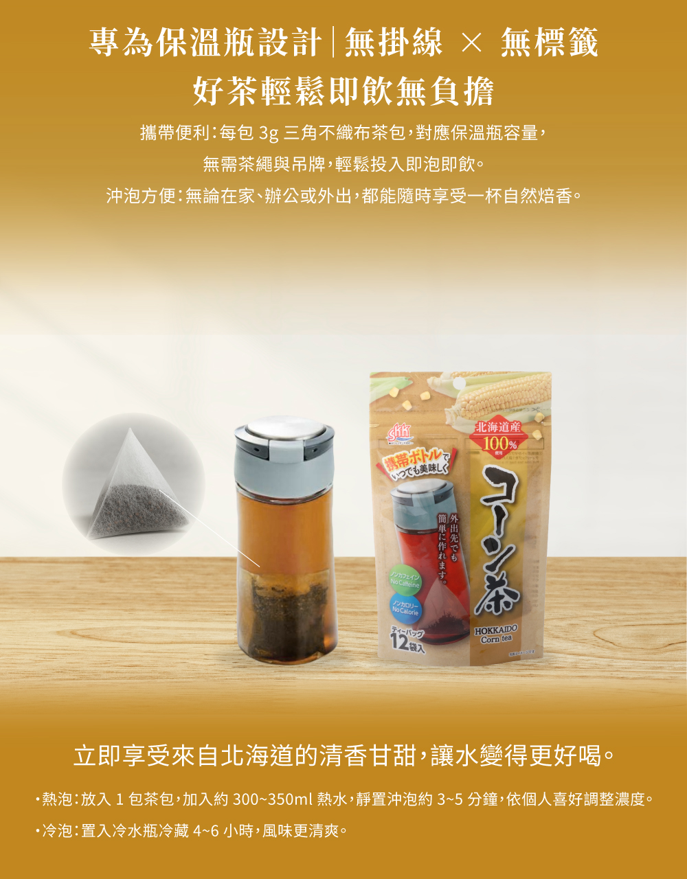 ◎ 攜帶便利:每包 3g 三角不織布茶包,對應保溫瓶容量,無需茶繩與吊牌,輕鬆投入即泡即飲。