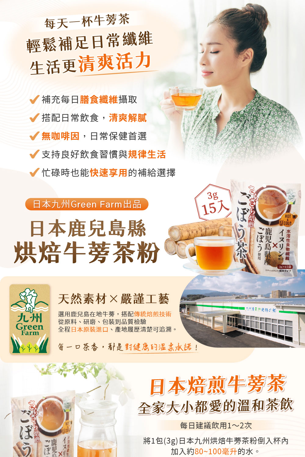 「天然素材 × 嚴謹工藝」由日本九州出品,選用鹿兒島在地牛蒡,搭配「傳統焙煎技術」 從原料、研磨、包裝到品質檢驗,全程日本原裝進口、產地履歷清楚可追溯。每一口茶香,都是對健康的溫柔承諾!